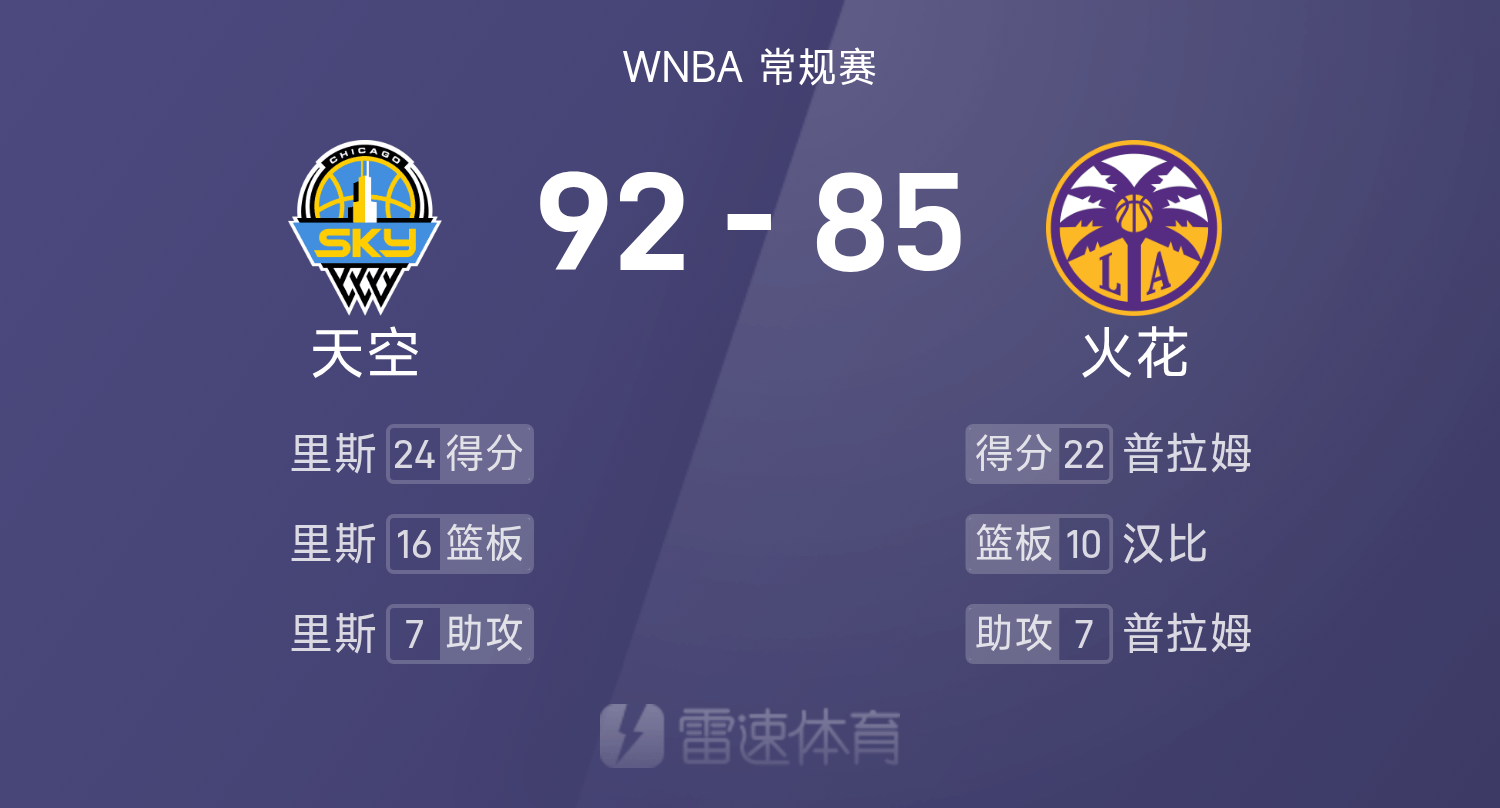 WNBA战报:里斯24分16板7助,普拉姆22分7助,天空92-83击败火花 xiaoqiao 2025-08-19 意甲 135 0 06月30日讯 25赛季WNBA 常规赛,火花对阵天空。双方全场战罢,火花83-92不敌天空。里斯砍下全场最高的24分16板7助,率领天空成功取胜。球员数据 查看更多详细数据 查看更多