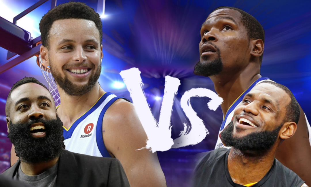 勒布朗·詹姆斯和詹姆斯·哈登,都是顶尖持球核,再结合射手群和大量换防夹击,来对决勇士的广域空间团队传切。