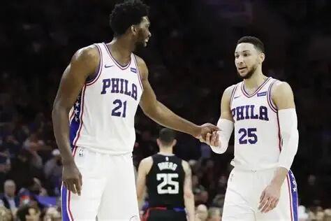 2017-18季,恩比德身边多了另一个天才:2016年状元、211公分身高的组织后卫本·西蒙斯。这个时常面无表情的左撇子青年,可以防四个位置;视野宽广,能轻易策动起漂亮的反击。2017年10月23日,本·西蒙斯生涯第四场NBA比赛,就拿下了21分12篮板10助攻的三双。2017-18季后半段,恩比德受伤时,西蒙斯带着费城76人打出了一波13连胜。但西蒙斯有自己的问题:他拒绝投三分球,甚至拒绝远射。2017-18季,他八成的投篮都在离筐5米之内:这大大限制了他的半场进攻能力。所以费城76人还需要JJ雷迪克这样的射手帮衬。2017-18季,费城76人打出了52胜30负,东部第三:落后于年轻天才云集的波士顿凯尔特人,以及由德玛尔·德罗赞与凯尔·洛瑞领衔、厚度领跑东部的多伦多猛龙。